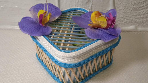 Взяла пластиковую баночку бамбуковую салфетку и получилась вот такая коробочка