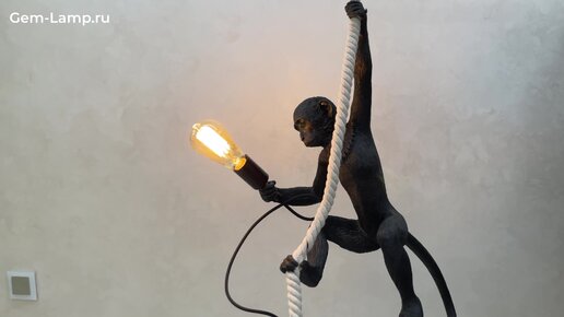 Дизайнерский светильник Monkey Lamp Black - в виде забавной обезьянки с лампочкой