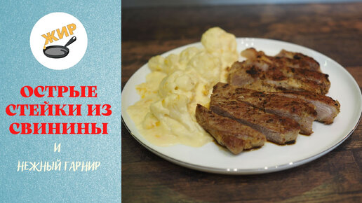 Свиные отбивные с цветной капустой запечённой с чесноком под сырным соусом.