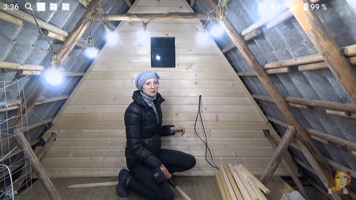 Обшила фронтон внутри дома вагонкой