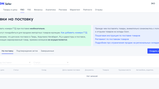 Озон, Как создать заявку на поставку