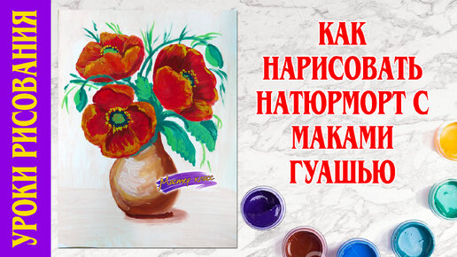 Цветы для мамы. Рисуем маки. урок рисования гуашью.6+