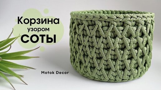 Вязаная корзина узором соты