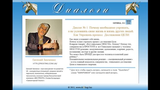 Диалог 1. О целях, качестве жизни и простоте