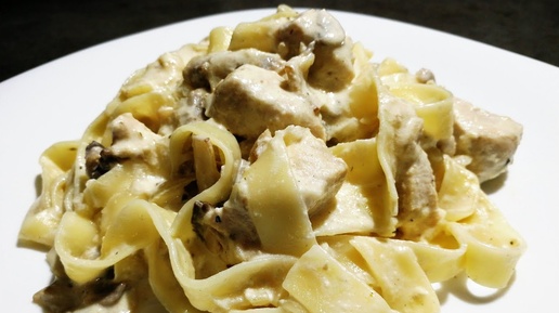 Паста фетучини с курицей и грибами в сливочном соусе. Паста с курицей в сливочном соусе. Вкусный рецепт