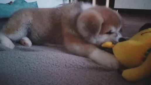акита-ину играет 2 месяца/akita inu playing with new toy 🐕🎠