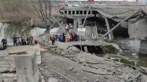 Эвакуация из Ирпеня. Мост взорвала украинская армия.