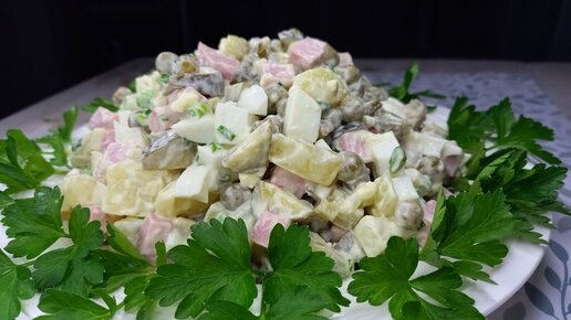 Классический салат оливье.Рецепт оливье с солеными огурцами.