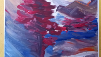 Пейзаж-абстракция. Ель в тумане. Рисунок.
