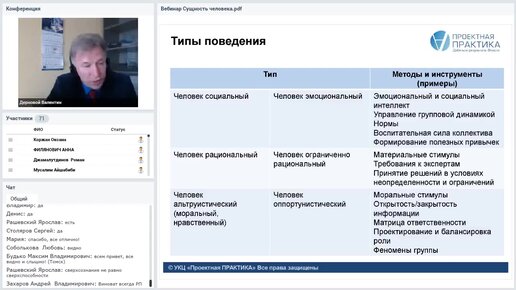 Вебинар «Сущность человека как основа поведенческого подхода»