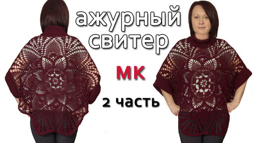 Ажурный свитер крючком+спицы. Часть 2, спинка.