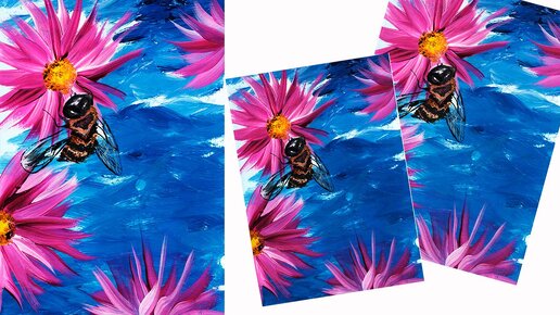 Как нарисовать шмеля. Рисуем лето гуашью. Летний пейзаж красками. Рисуем с детьми. Правополушарное рисование.
