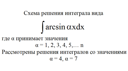 Схема решения неопределенного интеграла методом интегрирования по частям ∫arcsinαxdx пример 4 Высшая математика