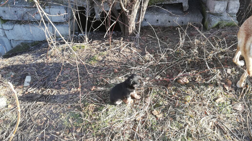Щенки бездомной собаки имеют свой характер. Дерутся друг с другом