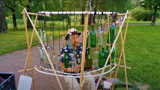 Уникальная игра на бутылках! Бутылофон Фёдор Григорьев. Музыка в стекле. Уличные музыканты Питера.