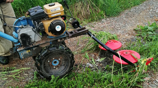 Покос бурьяна мотоблоком.