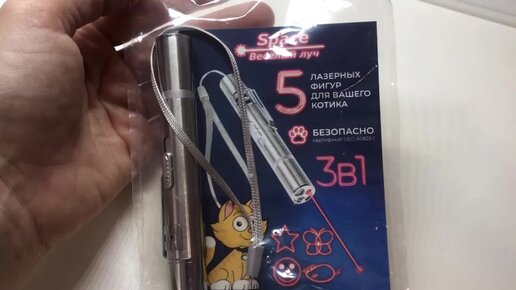 Лазерная указка 3в1. Фонарик, УВ, лазер. С фигурами для игры с кошками. Без батареек!