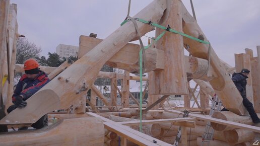 Сборка каркаса мансарды из бревна post&beam на сруб. Часть 2. Ферма + "Крылья"+Кони