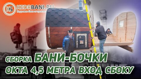 Сборка Бани-Бочки | Модель ОКТА 4,5 метра | Кедровая, вход сбоку