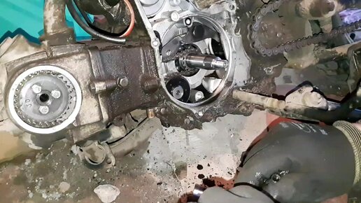 Мопед Альфа (Дельта) (колхозник) гремит цепь ГРМ сорвало ролик ремонт корзина сцепления часть 2.mp4