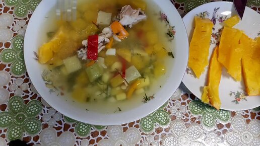 Лёгкий без зажарки овощной супик с добавлением тыквы.