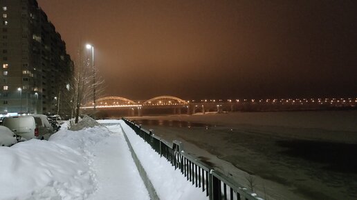 Панорама реки Волга / Зимний вечер / Волжская набережная, Нижний Новгород
