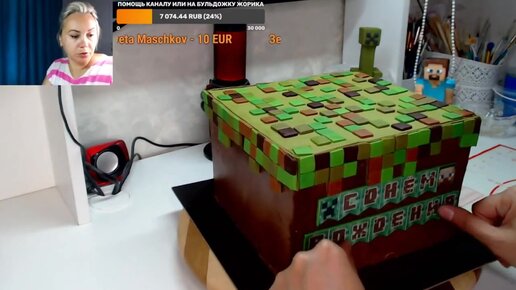 оформление торта в стиле Майнкрафт.