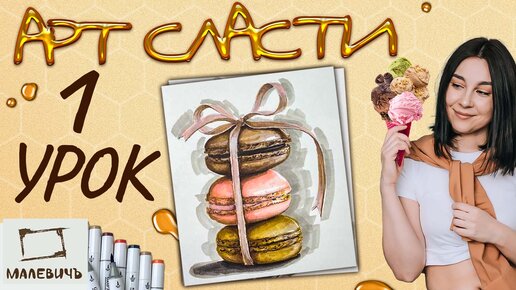 АРТ СЛАСТИ\1 урок. Рисуем макаруны МАРКЕРАМИ! Бесплатный урок для начинающих.