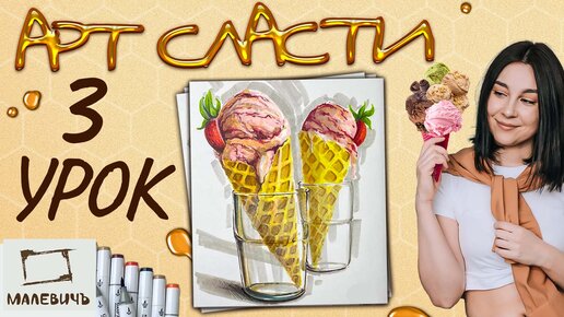 АРТ СЛАСТИ 3 урок Рисуем мороженое МАРКЕРАМИ! Бесплатный урок для начинающих.