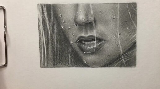 Капли на лице _ Простой карандаш на акварельной бумаге _ drawing Portrait by photo