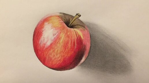 Красное яблоко _ рисунок карандашами