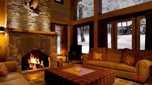 Звук огня в снежный день!