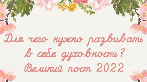 Для чего нужно развивать в себе духовность? Великий Пост 2022