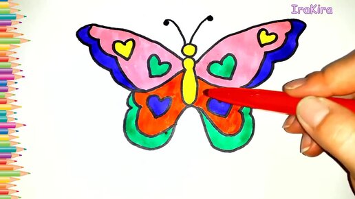 Рисуем бабочку с сердечками! Рисуем раскраски! Учим цвета на английском языке!