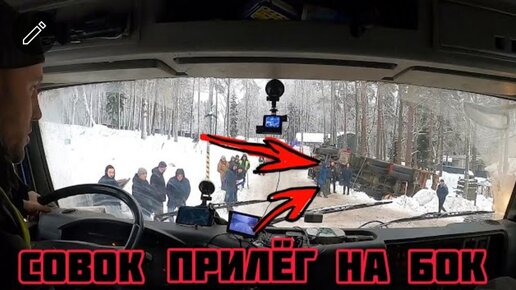 Доставка свай.Трал не вытянул в гору и перевернул самосвал с песком.Манипулятор с прицепом.
