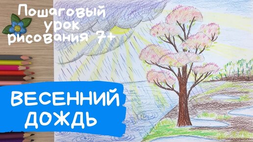 Дождь рисунок для детей. Рисунок весенний дождь Рисунок весенние воды Как нарисовать весенний дождь. Карандаши и краски.