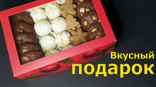 Вкусный подарок своими руками. Коробочка с печеньем. Лимонное, шоколадное и печенье с корицей.