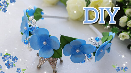 DIY / МК "ободок с цветочками из иранского фоамирана с бусинами"🤩💙🌿