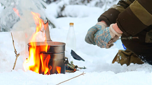 Поход в лес зимой,Армейский котелок,отдых в лесу,ПВД в ельник.