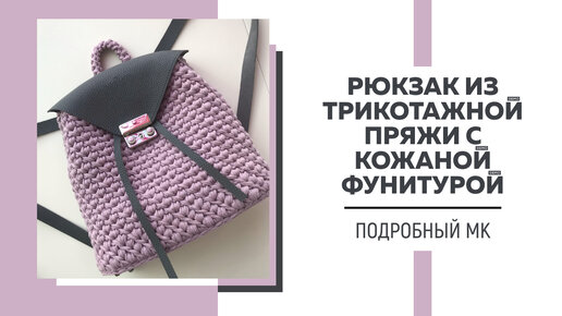 Рюкзак «Каталея» из трикотажной пряжи крючком с кожаной фурнитурой || Узор Диагонали || Подробный МК