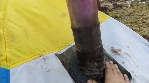 разделка в палатку под трубу дымохода.установка печки в палатке стэк 2.