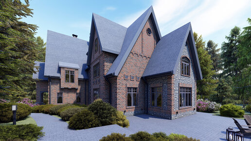 Проект загородного дома в стиле Тюдор. Автор Насонова Анна. 2022 г