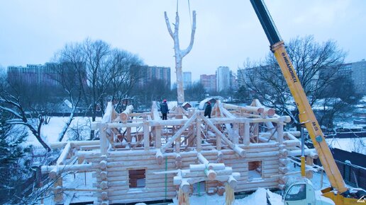 Сборка каркаса мансарды из бревна post&beam на сруб. Часть 3. Дерево + Финальные кони