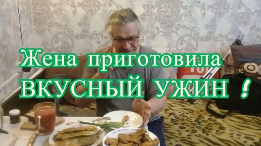 ВОТ это УЖИН ! Жена приготовила. Пожарила рыбки и крылышки на сковороде. Мукбанг - за обеденным столом в деревне