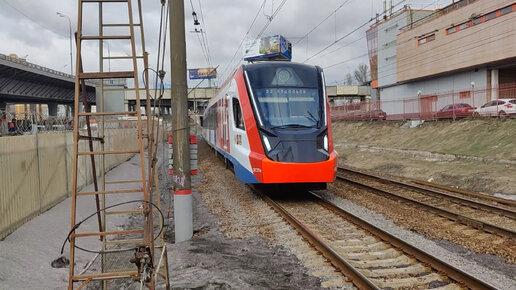 Виды Москвы из окна электрички МЦД. Промзона у железнодорожных путей. Строительство дорог и новой станции МЦД