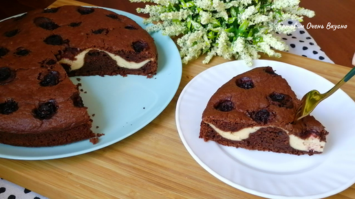 Влажный, мягкий пирог с шоколадом, вишней и яблоками. Брауни с начинкой