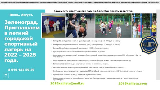 Зеленоград. Приглашаем в летний городской спортивный лагерь на 2022 – 2025 года.