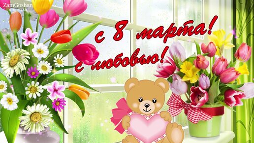 Поздравление с 8 марта! Красивая открытка, 8 марта. Поздравление с женским днём.