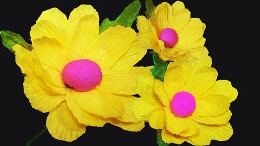 Легкие бумажные желтые цветы из гофрированной бумаги — мастер-класс