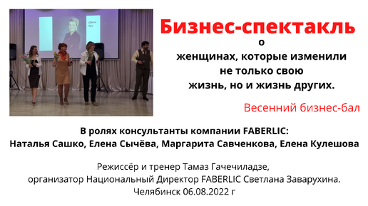 Бизнес-спектакль о женщинах, которые изменили свою жизнь и жизнь других. В ролях консультанты #faberlic